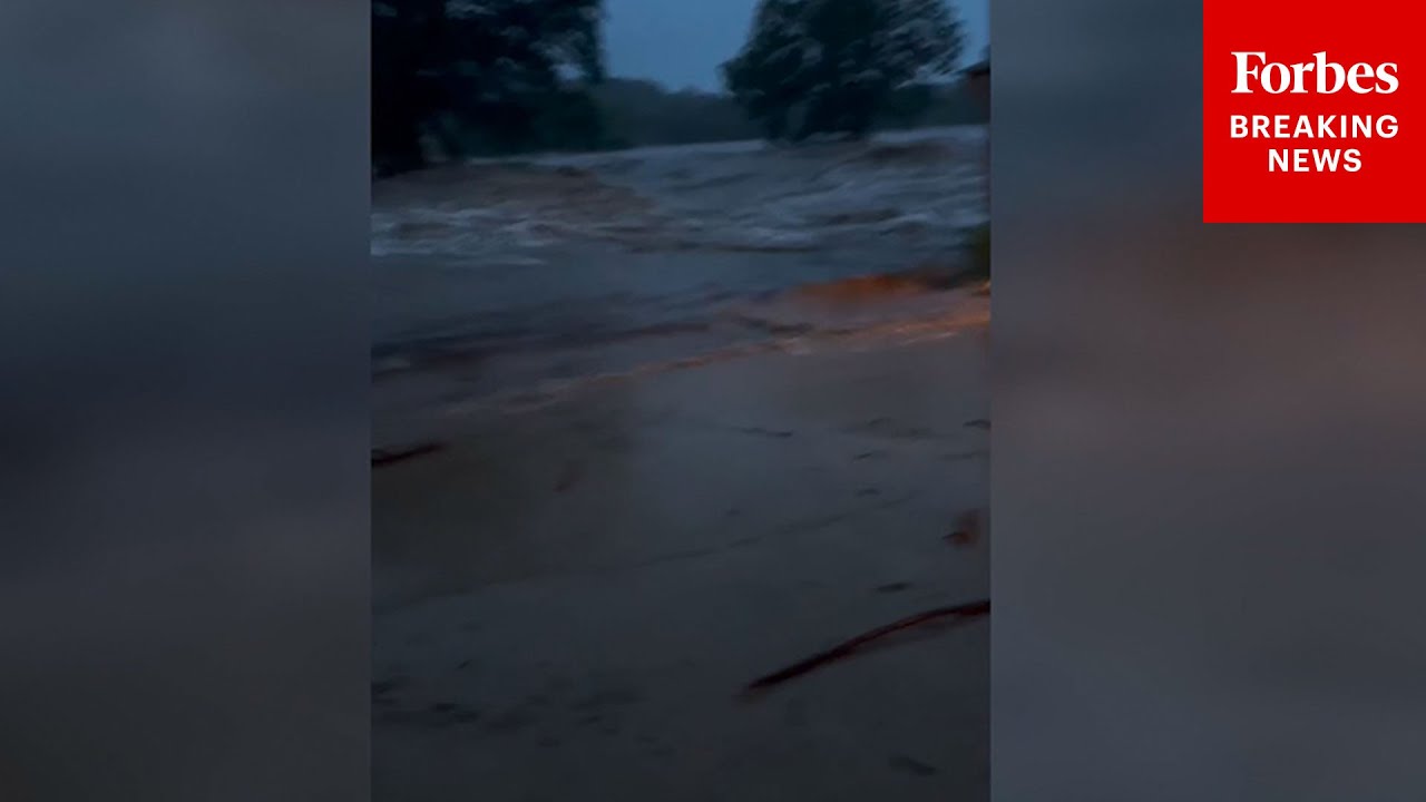 On-the-ground footage shows flood waters ripping through the Blue Oak RV Park in Kerrville, Texas.